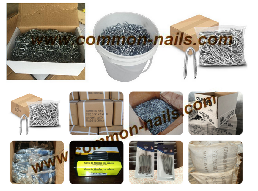 The staples length 1 inch (25.4mm ).nails diameters always used 8gague, 9gauge etc.;Three type of surface treatment are polished,electro galvanized and hot dipped galvanzied;Sharp point and smooth shank,Presser shank,Barbed shank ;common packing are 25kg per carton ;1kg per box ,20kg per carton;1kg per plastic bag,25bags per carton; 1lb per box ,50lbs per carton;5lbs per box ,50lbs per carton ;50lbs per plastic box or drum or make package according to customer's request.