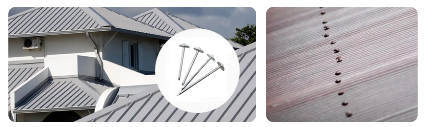 Umbrella head roofing nails aslo called Corrugated nails(The material is used by high-quality Q195 and Q235 steel wire. The Finish can be galvanized, black, yellow, white, and the shank of the roofing nails can be spiral shank, plain shank, groove shank, straight shank, twisted shank.) are mainly used to connect and fix various building materials and other hard materials. In the construction industry, corrugated nails are often used for connecting and fixing parts such as roofs and walls, especially in damp or corrosive environments such as coastal or industrial areas. Due to their excellent rust prevention performance, galvanized corrugated nails are particularly suitable. In addition, corrugated nails are also widely used in the decoration process, such as fixing wooden components, asbestos tiles, plastic tiles, as well as connecting cement walls, floors and surface materials, and fixing base structures. In addition to the fields of architecture and decoration, corrugated nails can also be used to make furniture and models, demonstrating their applicability in a wider range of handicrafts and DIY activities