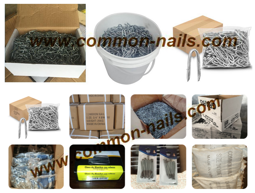 The staples length 2 inch (50.8mm ).nails diameters always used 8gague, 9gauge etc.;Three type of surface treatment are polished,electro galvanized and hot dipped galvanzied;Sharp point and smooth shank,Presser shank,Barbed shank ;common packing are 25kg per carton ;1kg per box ,20kg per carton;1kg per plastic bag,25bags per carton; 1lb per box ,50lbs per carton;5lbs per box ,50lbs per carton ;50lbs per plastic box or drum or make package according to customer's request.